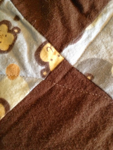 I only put tags around two sides so mommy and baby can have half the blanket to snuggle without having tags in the face (that would annoy me).
